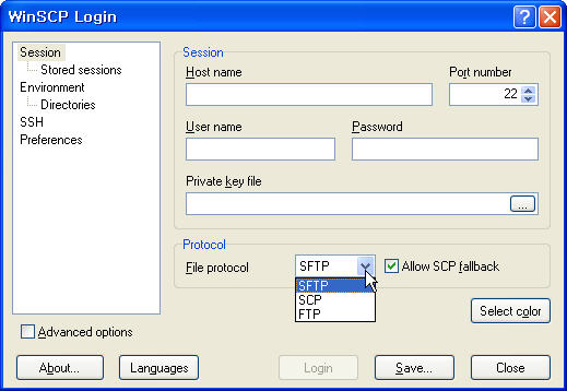기본적인 기능 및 사용법은 ftp 프로그램과 유사합니다.