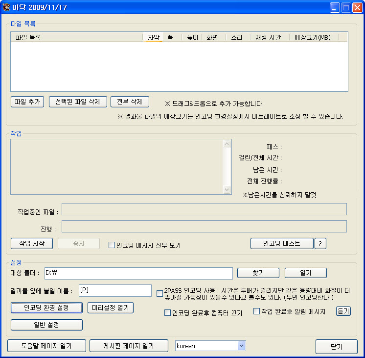 좌우지간 MENCODER를 이리저리 테스트한후 만든 껍데기인 "바닥" 의 장점을 소개하자면 ..