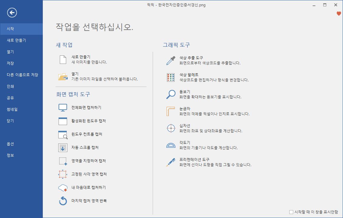 단축키를 캡쳐 방식별로 각각 설정해 줄 수 있고, 캡쳐한 이미지에 대해서 다양한 그래픽 툴이 제공되기 때문에 캡쳐 이미지에 대한 지문이나 다양한 작업을 즉석에서 처리할 수 있는 그래픽 작업 지원기능이 강력하군요.