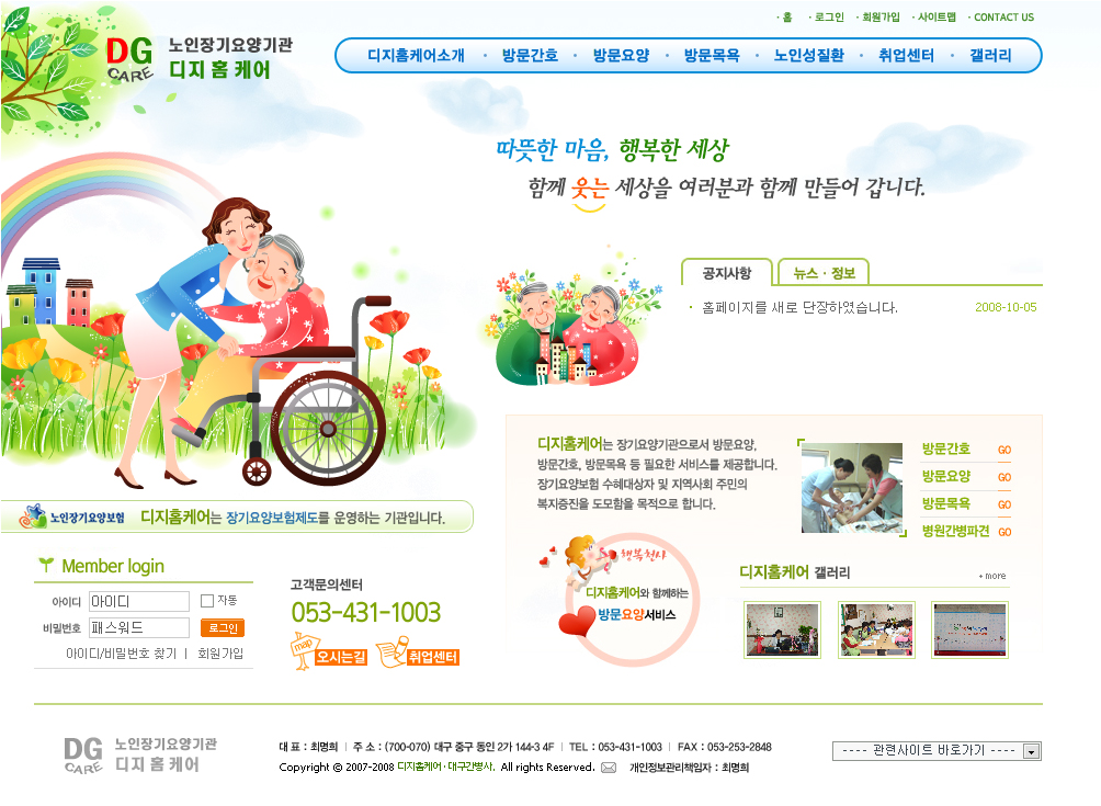 노인장기요양기관 디지홈케어 사이트가 제작완료 되었습니다.