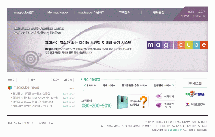 기업 | 매직큐브 사이트 제작완료 페이지 정보 작성자 : 이소희쪽지보내기 메일보내기 자기소개 아이디로 검색 전체게시물쪽지보내기 메일보내기 자기소개 아이디로 검색 전체게시물 작성일 : 08-12-20 13:17 조회 : 1,773회 댓글 : 0건 관련링크 : http://www.magicube.kr 470회 연결 본문 휴대폰을 이용하는 유비쿼터스 무인택배시스템 매직큐브 사이트가 제작완료 되었습니다. 댓글목록 등록된 댓글이 없습니다. 이전글 다음글 목록