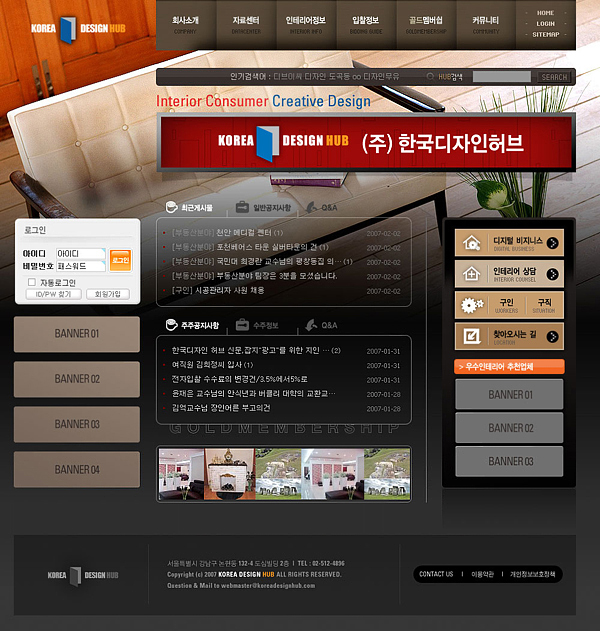 기업 | (주) 한국디자인허브 사이트입니다. 페이지 정보 작성자 : 이월선쪽지보내기 메일보내기 자기소개 아이디로 검색 전체게시물쪽지보내기 메일보내기 자기소개 아이디로 검색 전체게시물 작성일 : 06-12-30 16:03 조회 : 1,970회 댓글 : 1건 관련링크 : http://www.kdhub.com 284회 연결 http://www.kdhub.com 128회 연결 본문 (주) 한국디자인허브 인테리어디자인 관련 사이트입니다. 댓글목록 파랑새님의 댓글 파랑새이름으로 검색이름으로 검색 작성일 07-04-06 15:02 banner 들이 다 비어 있네요. 현재 운영중인 화면으로 변경해주십시요.^^ banner 들이 다 비어 있네요. 현재 운영중인 화면으로 변경해주십시요.^^ 이전글 다음글 목록