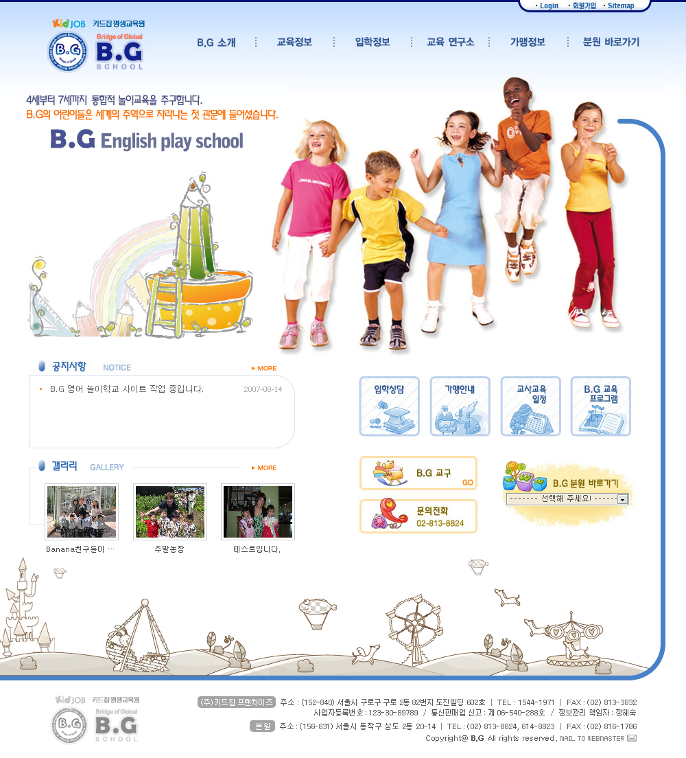 기업 | B.G 영어놀이학교 본원 페이지 정보 작성자 : 이월선쪽지보내기 메일보내기 자기소개 아이디로 검색 전체게시물쪽지보내기 메일보내기 자기소개 아이디로 검색 전체게시물 작성일 : 07-11-14 19:09 조회 : 1,138회 댓글 : 0건 관련링크 : http://www.bgschool.co.kr 180회 연결 본문 B.G 영어놀이학교 본원사이트가 제작 완료 되었습니다. [본원] http://bgschool.co.kr 댓글목록 등록된 댓글이 없습니다. 이전글 다음글 목록