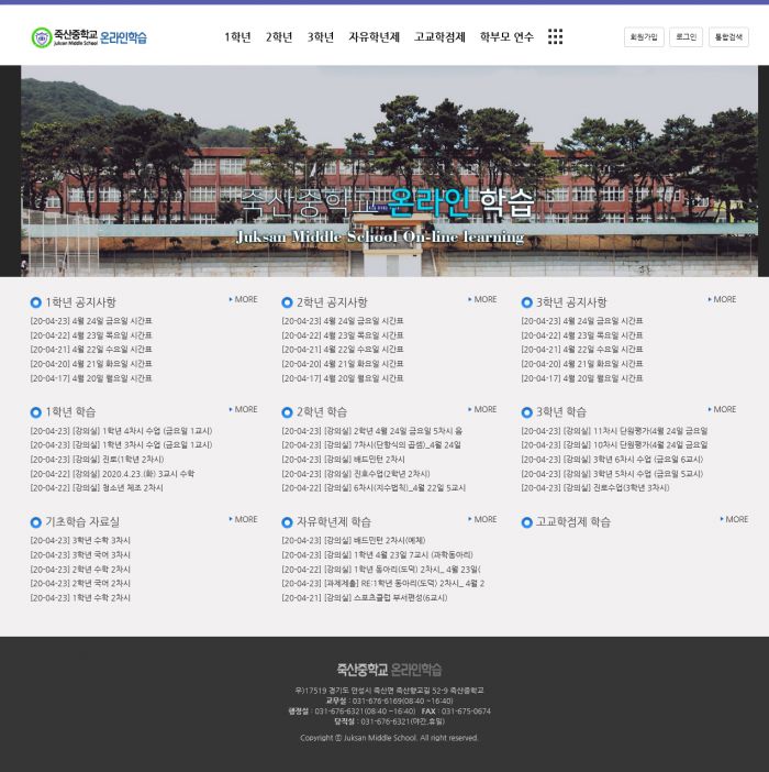 안성시 죽산중학교 온라인학습 전용 홈페이지를 제작했습니다.