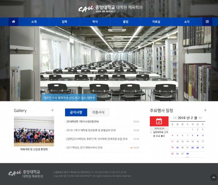 학교/대학 | 중앙대 대학원 체육학과 홈페이지 페이지 정보 작성자 : 바다아저씨쪽지보내기 메일보내기 홈페이지 자기소개 아이디로 검색 전체게시물쪽지보내기 메일보내기 홈페이지 자기소개 아이디로 검색 전체게시물 작성일 : 18-02-28 14:09 조회 : 1,992회 댓글 : 0건 관련링크 : http://pe.cau.ac.kr 1021회 연결 본문 중앙대학교 일반대학원 체육학과 홈페이지를 제작했습니다. 반응형으로 제작했습니다. 댓글목록 등록된 댓글이 없습니다. 이전글 다음글 목록
