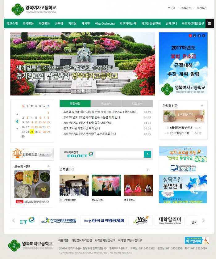 수원 영복여자고등학교 홈페이지를 제작했습니다.