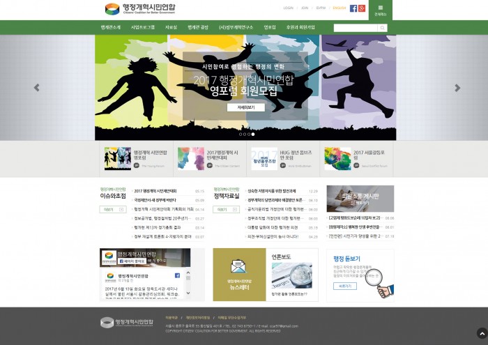 반응형 | 헹장게혁시민연합 페이지 정보 작성자 : 바다아저씨쪽지보내기 메일보내기 홈페이지 자기소개 아이디로 검색 전체게시물쪽지보내기 메일보내기 홈페이지 자기소개 아이디로 검색 전체게시물 작성일 : 17-08-08 15:02 조회 : 728회 댓글 : 0건 관련링크 : http://www.ccbg.or.kr/ 320회 연결 본문 횅정개혁시민연합 홈페이지를 새롭게 리뉴얼했습니다. 반응형으로 제작한 홈페이지입니다. 댓글목록 등록된 댓글이 없습니다. 이전글 다음글 목록