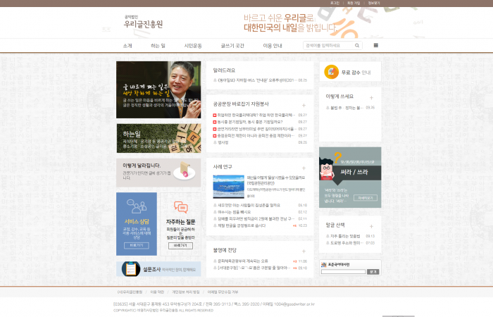 반응형 | 우리글진흥원 홈페이지 리뉴얼 작업 페이지 정보 작성자 : 바다아저씨쪽지보내기 메일보내기 홈페이지 자기소개 아이디로 검색 전체게시물쪽지보내기 메일보내기 홈페이지 자기소개 아이디로 검색 전체게시물 작성일 : 17-09-28 13:58 조회 : 1,058회 댓글 : 0건 관련링크 : http://www.goodwriter.or.kr/ 612회 연결 본문 사단법인 우리글진흥원 홈페이지를 리뉴얼 작업을 완료했습니다. 반응형으로 제작해 드렸습니다. 댓글목록 등록된 댓글이 없습니다. 이전글 다음글 목록