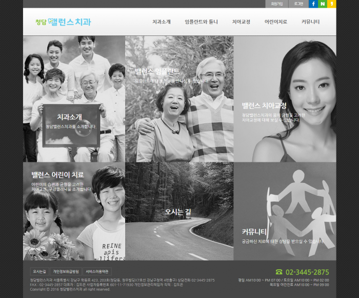 병원 | 청담밸런스치과 홈페이지 페이지 정보 작성자 : 바다아저씨쪽지보내기 메일보내기 홈페이지 자기소개 아이디로 검색 전체게시물쪽지보내기 메일보내기 홈페이지 자기소개 아이디로 검색 전체게시물 작성일 : 16-06-29 16:20 조회 : 1,395회 댓글 : 0건 관련링크 : http://balancedental.co.kr/ 648회 연결 본문 청담밸런스치과 홈페이지를 제작완료하였습니다. 댓글목록 등록된 댓글이 없습니다. 이전글 다음글 목록