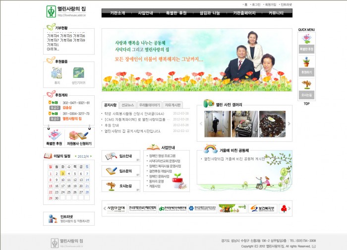 사회복지시설을 운영하는 김송삼 원장님의 요청으로 작업에 착수한 홈페이지입니다.