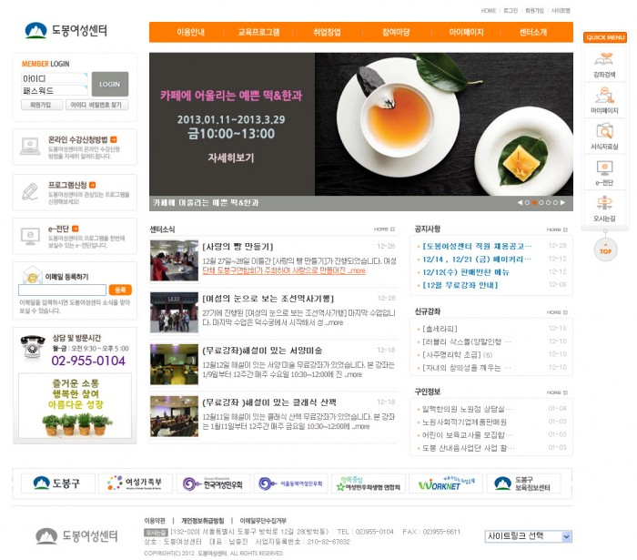 도봉여성센터 홈페이지를 새로 제작했습니다.
