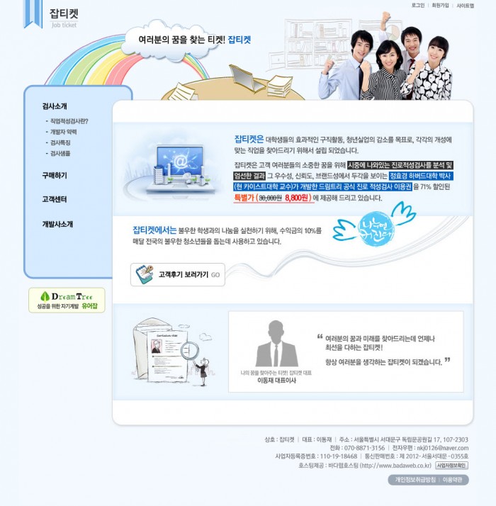다중지능 적성검사 프로그램 개발은 저희가 드림트리 유어잡 사이트 개발을 통해서 시작했다고 할 수 있습니다.
