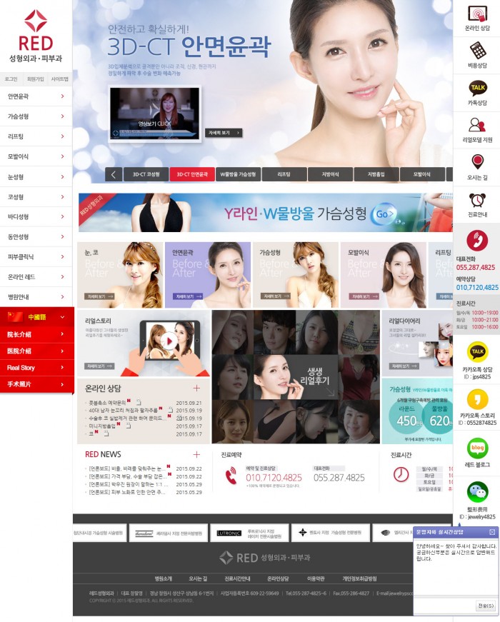 병원 | 레드 성형외과 홈페이지 제작 페이지 정보 작성자 : 바다아저씨쪽지보내기 메일보내기 홈페이지 자기소개 아이디로 검색 전체게시물쪽지보내기 메일보내기 홈페이지 자기소개 아이디로 검색 전체게시물 작성일 : 15-09-23 17:56 조회 : 2,128회 댓글 : 0건 관련링크 : http://www.redps.net/ 1202회 연결 본문 레드 성형외과 홈페이지 제작했습니다. 창원에 위치한 성형수술 전문 병원입니다. 댓글목록 등록된 댓글이 없습니다. 이전글 다음글 검색 목록