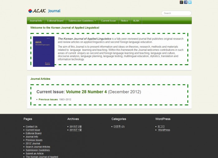 학회 사이트를 제작하면서 저널 사이트를 분리하여 제작하였습니다.