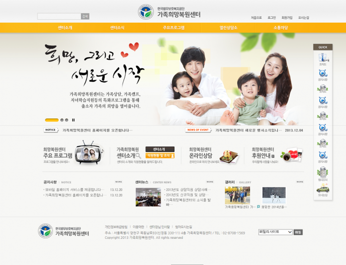 한국법무보호복지공단 산하 가족희망복원센터 웹접근성 지원 홈페이지 제작이 완료도었습니다.