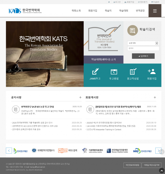 사회단체 | 한국번역학회 홈페이지 페이지 정보 작성자 : 바다아저씨쪽지보내기 메일보내기 홈페이지 자기소개 아이디로 검색 전체게시물쪽지보내기 메일보내기 홈페이지 자기소개 아이디로 검색 전체게시물 작성일 : 20-11-23 16:47 조회 : 772회 댓글 : 0건 관련링크 : http://kats.or.kr/ 378회 연결 본문 한국번역학회 홈페이지 제작했습니다. 반응형으로 제작했고, 논문 검색 기능을 탑재했습니다. 댓글목록 등록된 댓글이 없습니다. 이전글 다음글 검색 목록