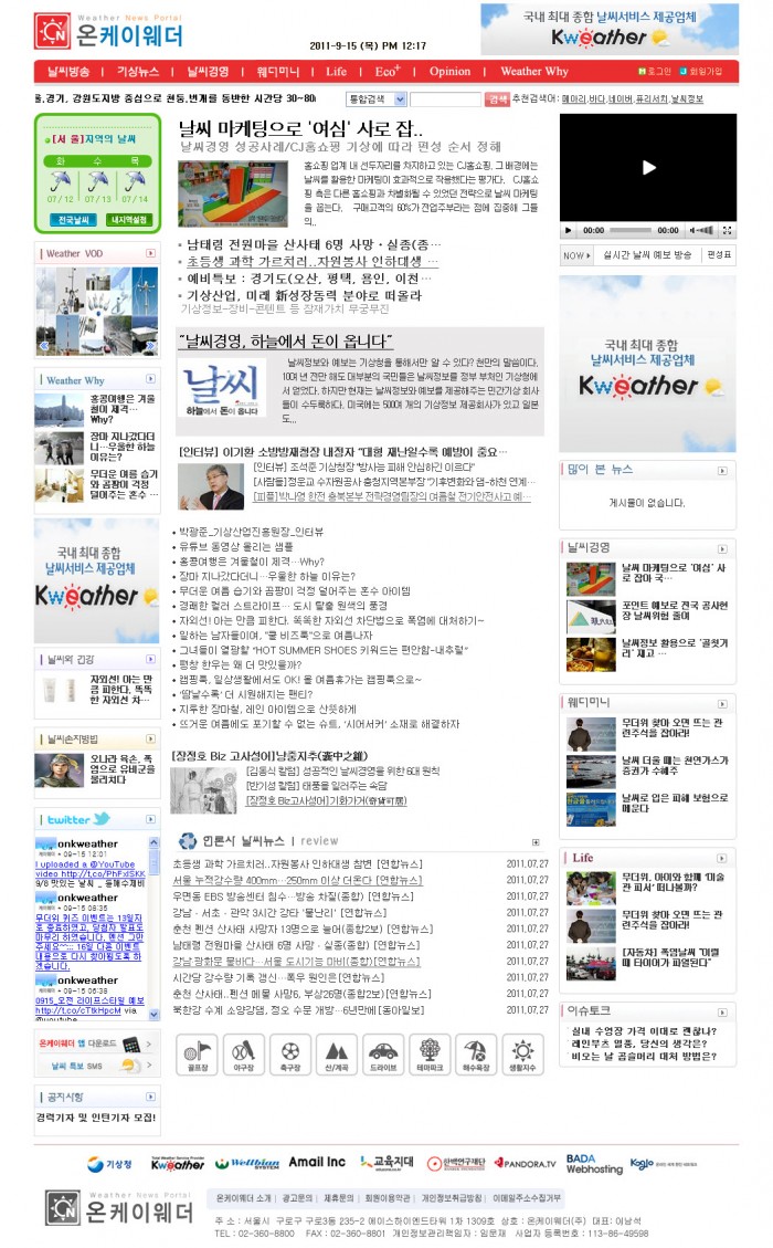 케이웨더 사이트에서 제공되는 방송 서비스와 각종 날씨 정보를 연동해서 실시간으로 서비스를 하는 기능이 제공됩니다. 방송의 경우는 오라클db를 사용해서 제공되는데 완벽하게 연동이 되도록 작업이 되어 있습니다.