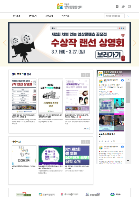 사회단체 | 도봉성평등활동센터 페이지 정보 작성자 : 바다아저씨쪽지보내기 메일보내기 홈페이지 자기소개 아이디로 검색 전체게시물쪽지보내기 메일보내기 홈페이지 자기소개 아이디로 검색 전체게시물 작성일 : 22-03-17 15:48 조회 : 285회 댓글 : 0건 본문 도봉 성평등활동센터 홈페이지입니다. 댓글목록 등록된 댓글이 없습니다. 이전글 다음글 목록